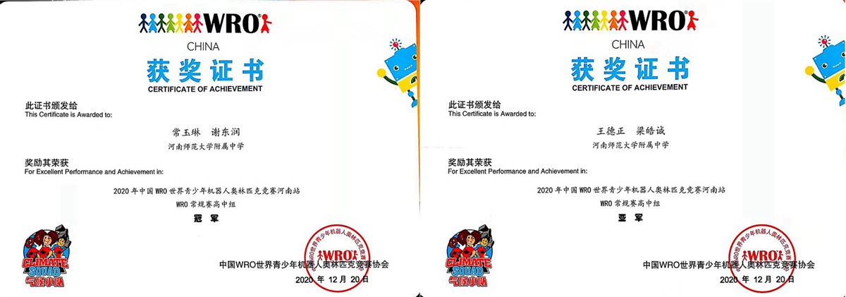 河南师大附中科技创新团队在2020WRO世界青少年机器人奥林匹克竞赛河南站比赛中包揽常规赛冠亚军