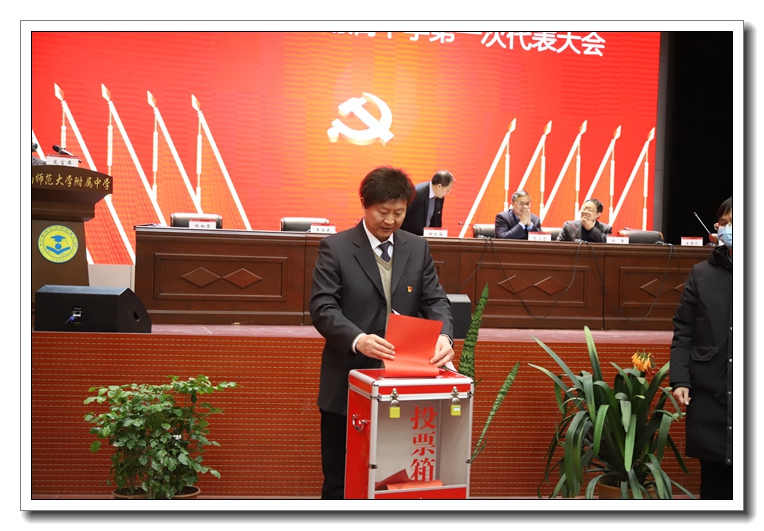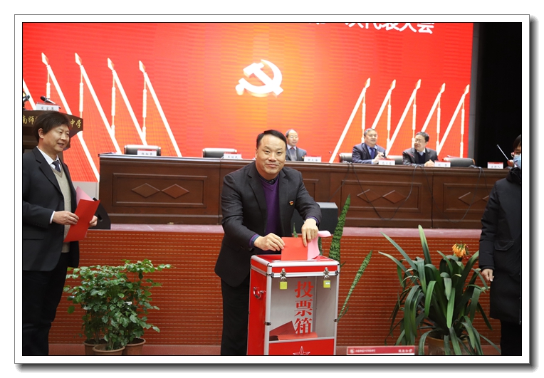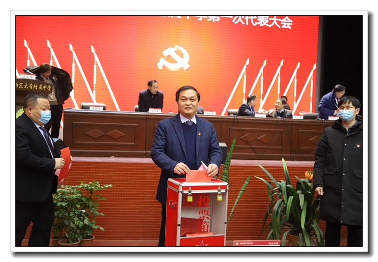 正式选举开始后,到会的107名正式党员代表本着高度负责的态度,严格按照大会选举办法,认真填写选票,以无记名投票差额选举的方式选举产生了新一届中共河南师范大学附属中学委员会委员和纪律检查委员会委员。谢友海、李杰明、刘齐晋、杨呈杰、陈景任、侯伟六位同志当选为新一届党委委员;刘齐晋、刘峰、张同一、海增建、董良五位同志(以姓氏笔画为序)当选为纪委委员。