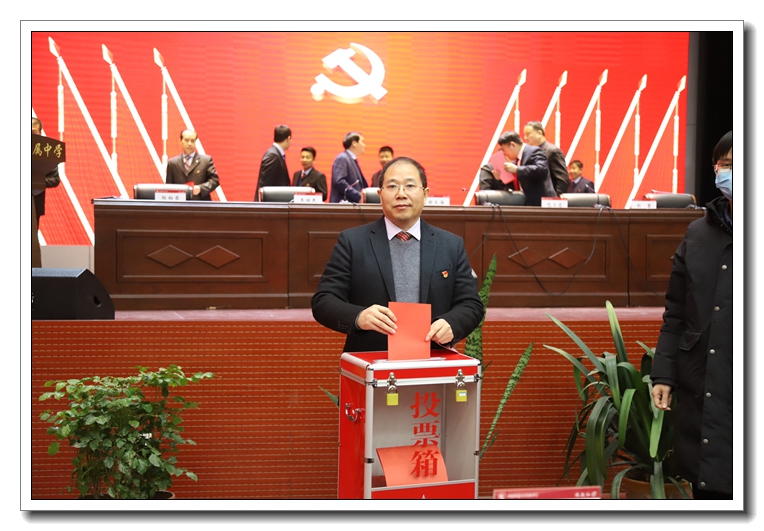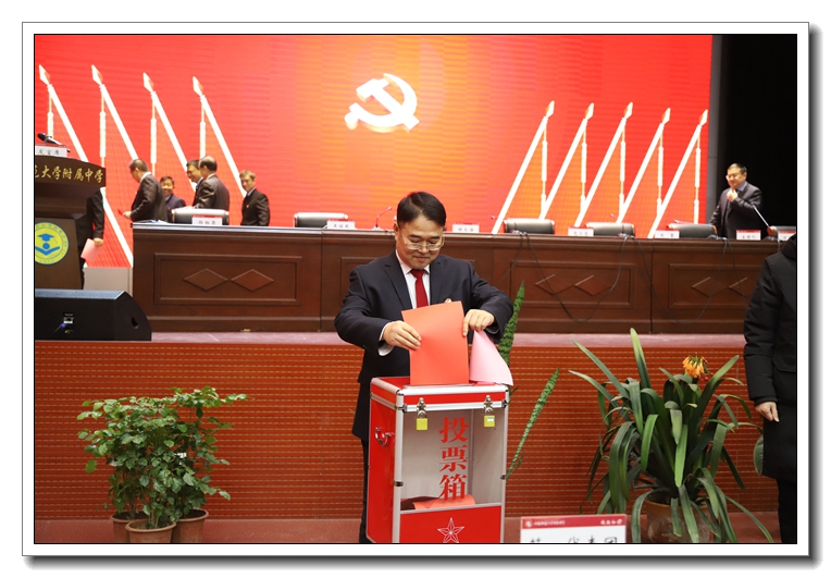 接着,上届党委委员、原校长刘黎同志宣读《中共河南师范大学附属中学委员会、纪检委员会选举办法(草案)》,原党委书记包卫忠同志介绍新一届党委委员和纪委委员候选人预备人选酝酿、提名情况以及各位候选人的基本情况。之后,大会依次表决通过了《选举办法》和总监票人、监票人,指定了总计票人、计票人名单,审议通过了新一届党委委员和纪委委员的候选人名单。