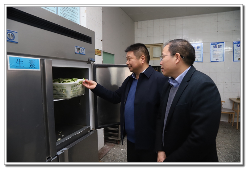 3月11日,为充分了解教工餐厅近来的试运营情况,我校领导班子成员谢友海、李杰明、刘齐晋、杨呈杰、陈景任、侯伟来到桃源教工餐厅,到后厨仔细查看了原材料储藏室、菜品加工间和操作流程等。校领导李杰明强调,宿膳服务中心要本着“把好事办好”的原则,广泛征集教职工的意见和建议,不断提高教工餐厅的服务质量与菜品质量,把办好教工餐厅当作为教职工做实事办好事解难事来抓,为广大教职工提供满意、放心、环境温馨的就餐服务。