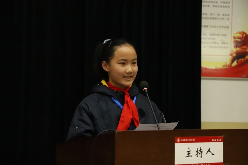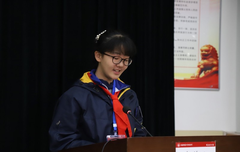 第一届少先大队委员代表于果发言,号召全体大队委员们,要肩负起光荣的使命,努力在师大附中这个和美的大家庭中,树立“从小学先锋,长大做先锋”的坚定信念,争做新时代的好队员。