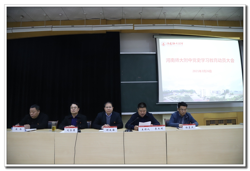 刘齐晋宣读了《中共河南师范大学附属中学委员会关于开展党史学习教育的实施方案(草案)》,方案从开展专题学习、宣讲活动等五个大方面对我校党史学习教育开展进行了具体安排部署,并就组织机构建设、责任部门划分和相关工作要求进行了详细说明。他要求,各责任部门牢牢把握方案中提出的目标要求和重点任务,对标对表习近平总书记重要讲话精神和中央部署要求,高标准高质量抓好我校党史学习教育,学出坚定信仰,感悟初心使命,强化感恩意识,修炼好共产党人的“心学”。