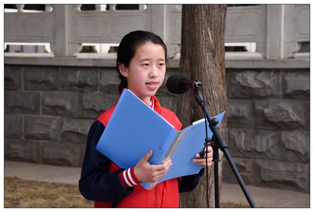 下午四时,祭奠革命先烈仪式正式开始,此次仪式严格按照“少先队祭奠先烈仪式”流程执行,本部初二年级1903班赵妤玥同学主持。