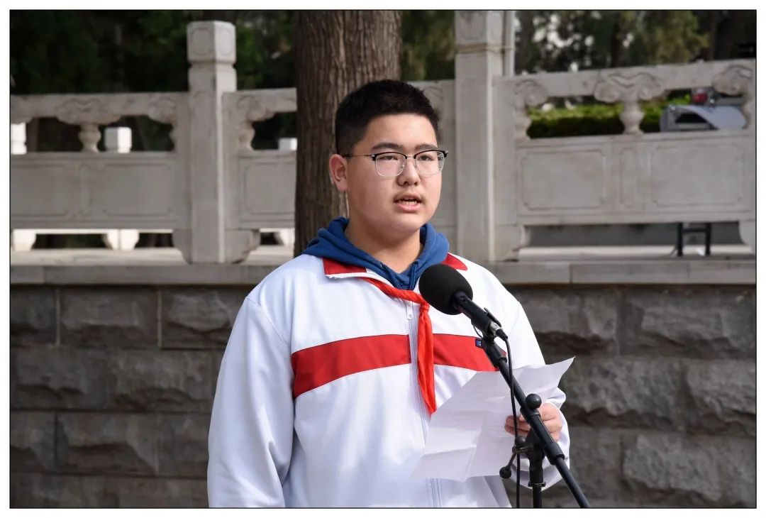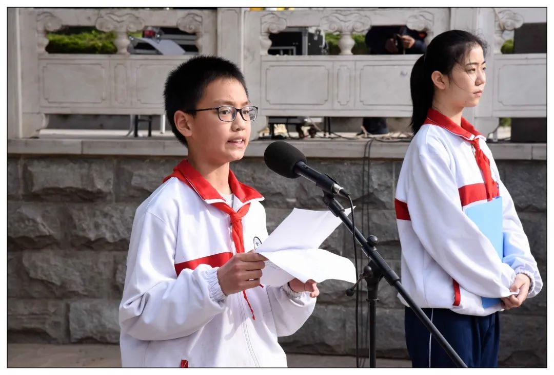 然后,由校本部少先队员代表孟柯延、刘俞岐和实验学校王若阳三位同学就学习烈士事迹、明确个人责任、清明致敬英烈等不同方面进行了发言。