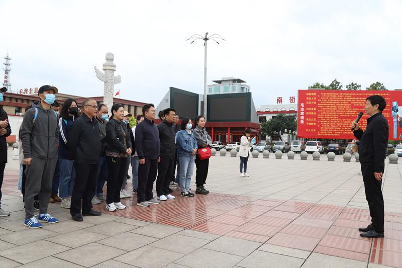 一到南街村东方红广场,考察团全体成员便集结在一起,聆听南街村基层干部学院郭富胜校长讲解,了解南街村党员干部如何团结带领人民群众坚持发展集体经济、走共同富裕之路的先进事迹,并环绕毛泽东同志塑像一周,向中国共产党的缔造者、伟大领袖致敬,学习南街村人坚定革命信仰和理想信念,永远跟党走的可贵精神。