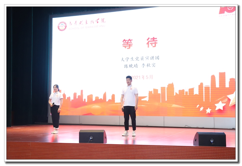 陈晚清,马克思主义学院2019级硕士研究生,2020年全国青年马克思主义者培养工程高校班成员,曾获全国“优秀共青团员”、全国高校大学生微电影展示活动“一等奖”等荣誉。李秋实,马克思主义学院2020级硕士研究生,曾获市优秀毕业生、校优秀学生干部等荣誉。她们二人的宣讲题目是:《等待》。