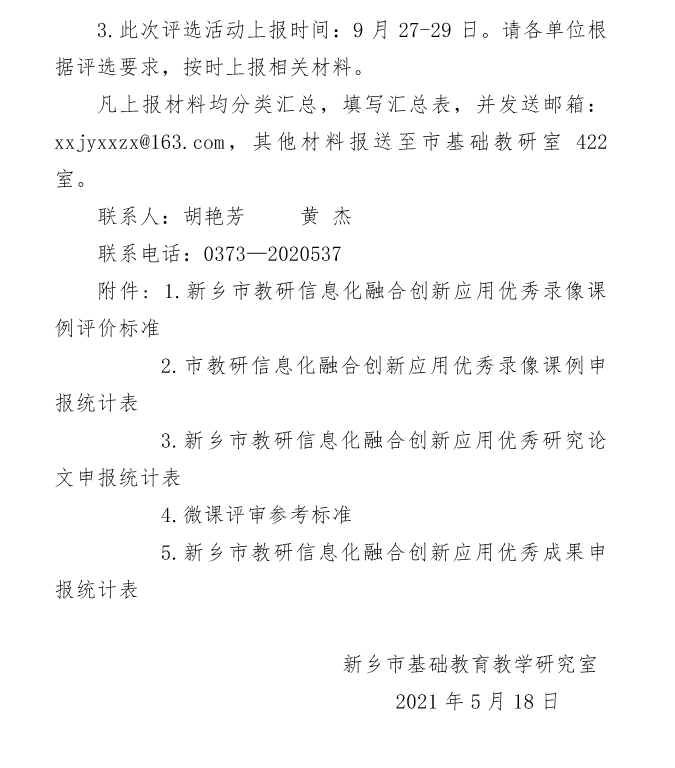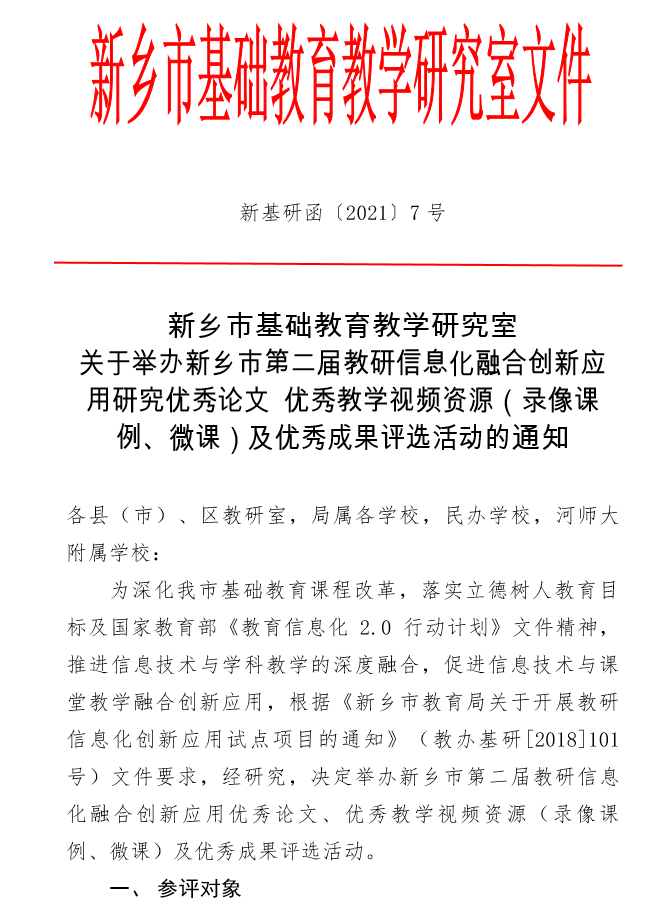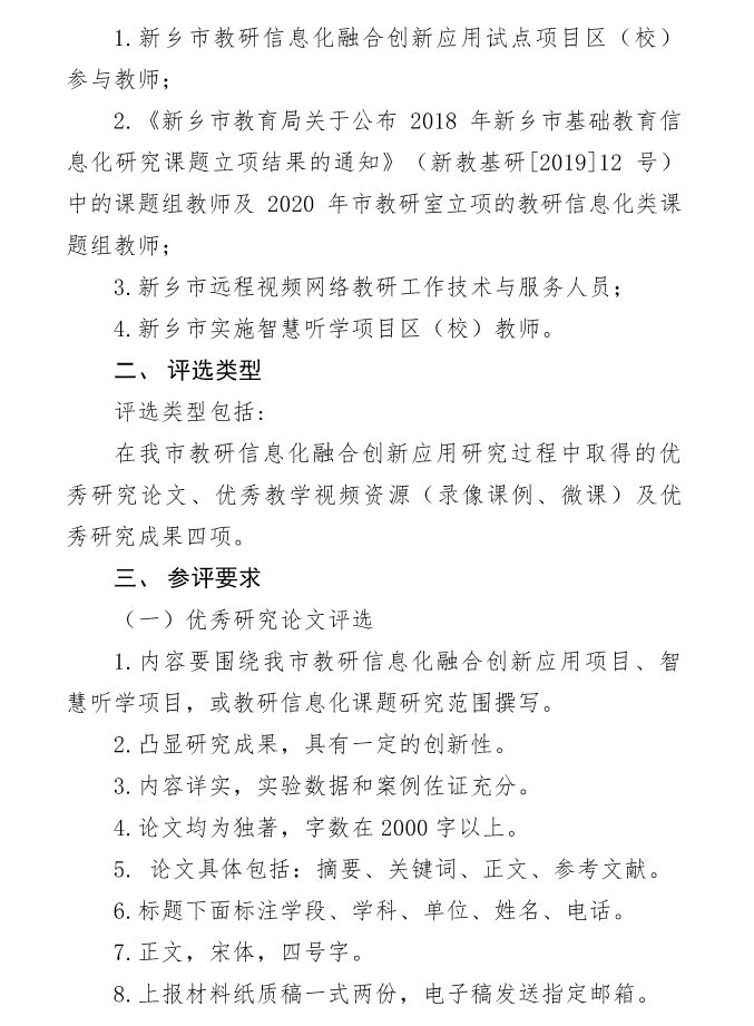 附件:关于举办新乡市第二届教研信息化融合创新应用研究优秀论文 优秀视频资源(录像课例、微课)及优秀成果的通知