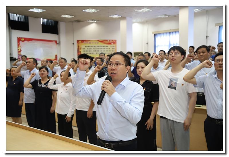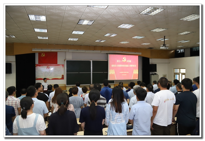 6月29日下午,我校在教研办公楼四楼党员活动室举行“迎七一 庆华诞”新党员入党宣誓和党员重温入党誓词仪式。校党委书记谢友海,党委副书记、纪委书记、工会主席刘齐晋,副校长杨呈杰、陈景任、侯伟等校领导以及中层党员领导干部,各党总支、党支部委员,新党员参加了本次仪式,入党积极分子、入党申请人等列席观礼,仪式由刘齐晋主持。