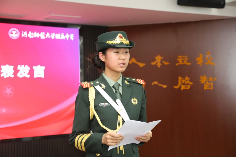周晋阳宣读了《关于成立河南师大附中国旗护卫队的决定》。