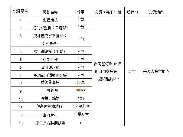 河南师范大学附属中学力量训练室器材购置项目已具备施工招标条件,现对该项目进行招标。