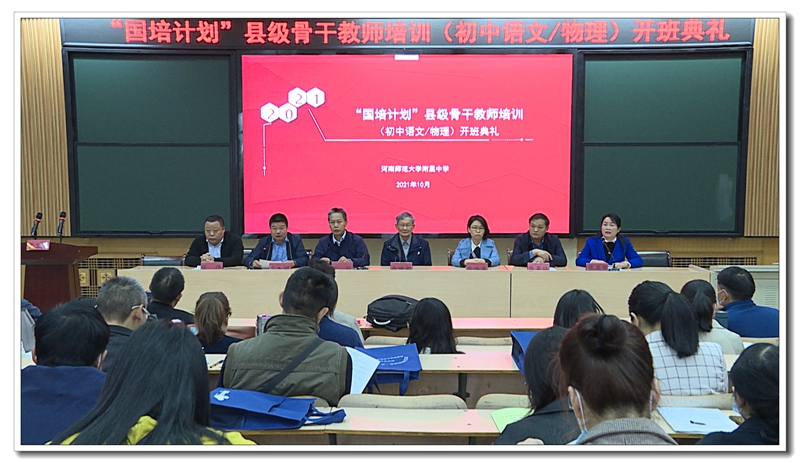 10月11日上午,由我校承担的“国培计划(2021)” 县级骨干教师培训班(初中语文、初中物理)开班仪式在教研办公楼四楼举行。原湖北省荆州市教科院老师余映潮、新乡市教育局教师教育科科长张锐、新乡市教育科学研究所所长高海英出席活动,河南师大附中副校长(主持工作)李杰明、副校长陈景任、副校长侯伟参加开班仪式,仪式由校科研处副主任张凤霞主持。