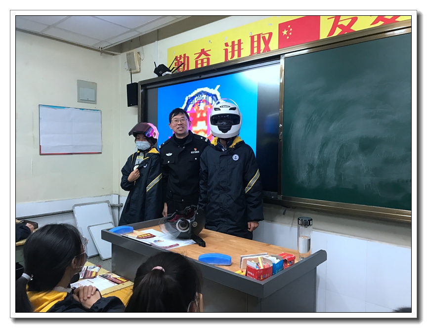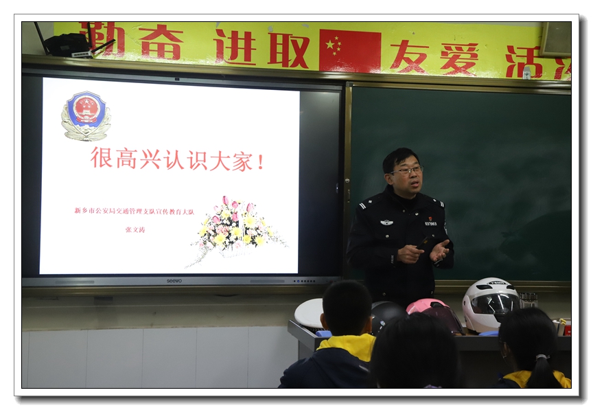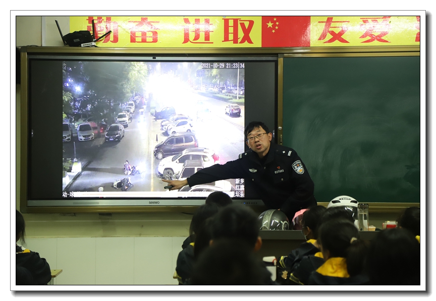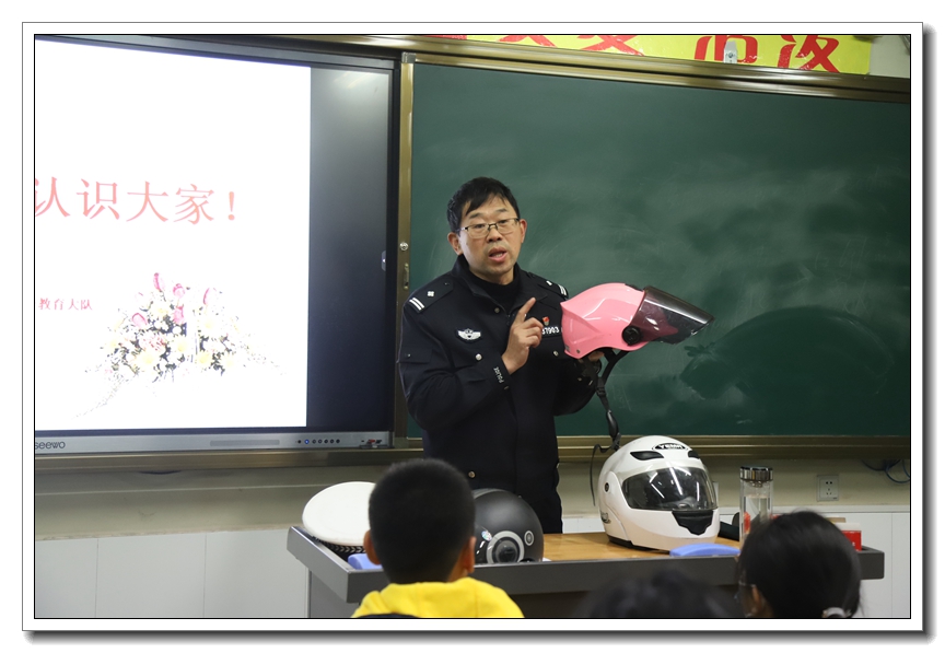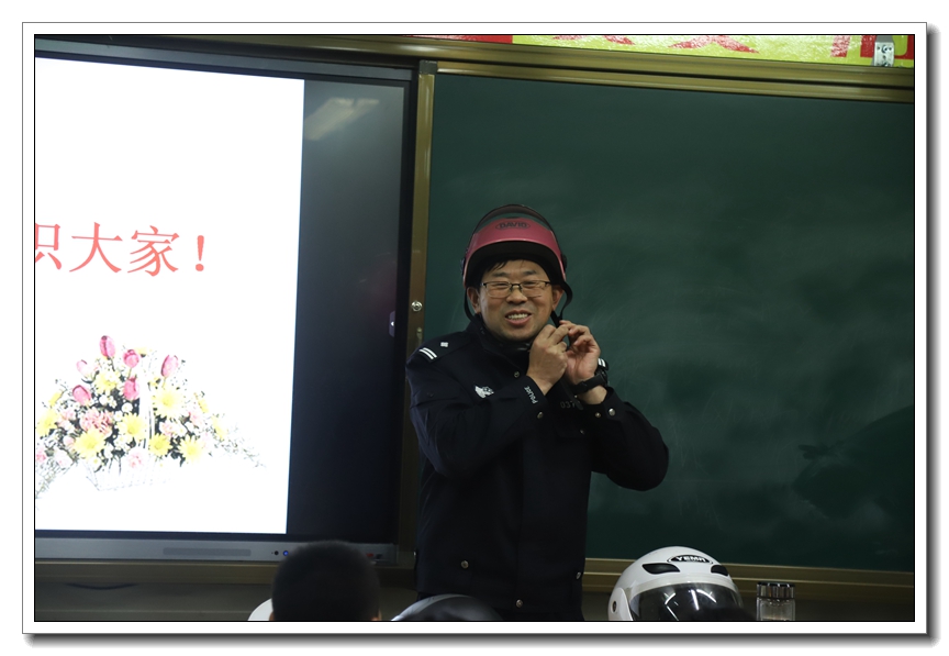 为提高我校师生驾、乘电动车佩戴头盔率,增强我校广大师生交通安全意识、自我保护能力,倡导安全、文明的出行方式,助推全国文明城市创建工作。11月8日,我校邀请新乡市公安局交通管理支队指挥中心主任王立志、宣传教育大队警长张文涛等到校进行安全教育知识宣讲。