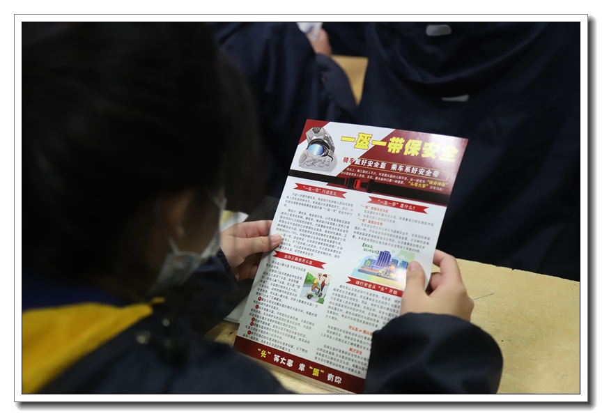 讲座最后,宣传民警给每位同学发放了交通安全知识宣传页,结合学生日常出行方式和学校周边道路环境,用通俗易懂的语言向学生普及了盲区等交通安全常识,传达了佩戴安全头盔的重要性。