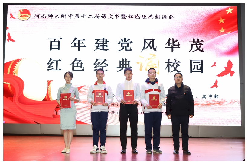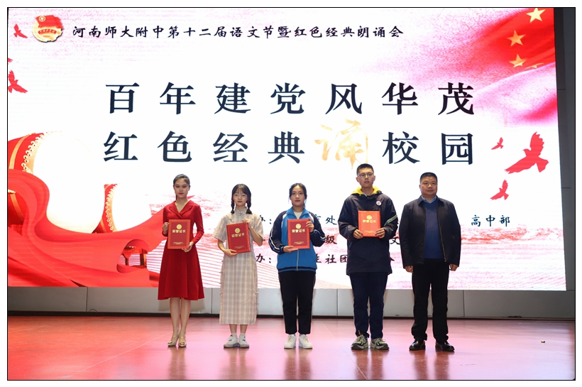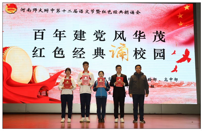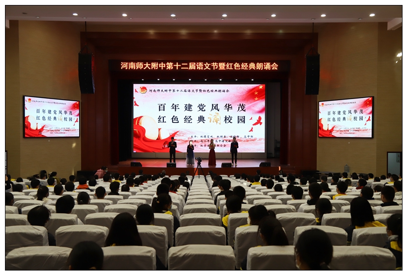 为传承和弘扬中华红色文化,培养学生的爱国情操,激发学生对语文学习的兴趣和热情,让讲诵红色经典伴随学生健康成长,进而增强学生的民族自豪感和自信心。11月30日下午,由校德育处、校团委、本部和高中部主办,高二年级和高中语文教研组承办,校学生社团联合会协办的我校“百年建党风华茂,红色经典诵校园”第十二届语文节汇报演出活动在西校区教工礼堂成功举办。校领导李杰明、刘齐晋莅临出席,相关学部和部门负责人同部分师生代表共同观看了汇演活动——红色经典朗诵会。汇演活动由史昕怡、秦麟、余欣亭、赵俊凯四位同学主持。