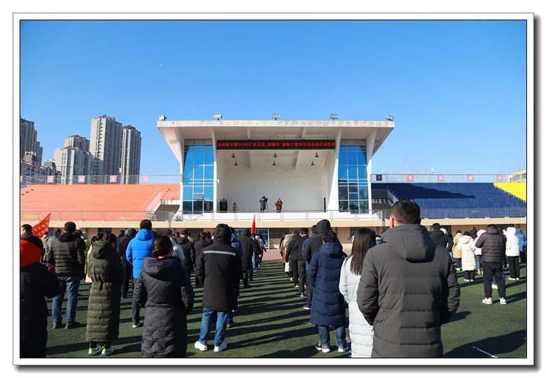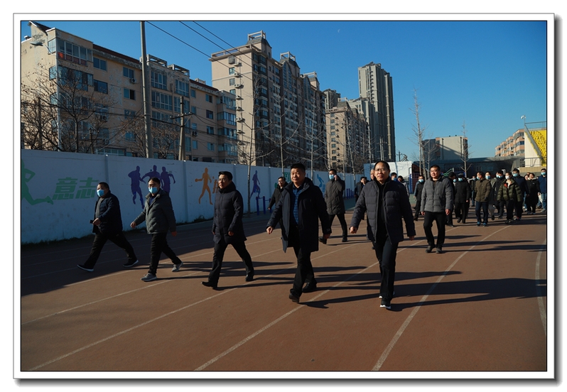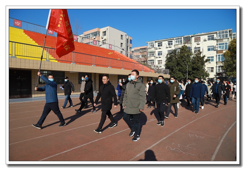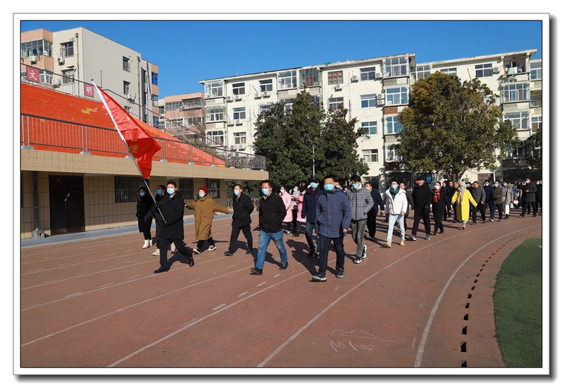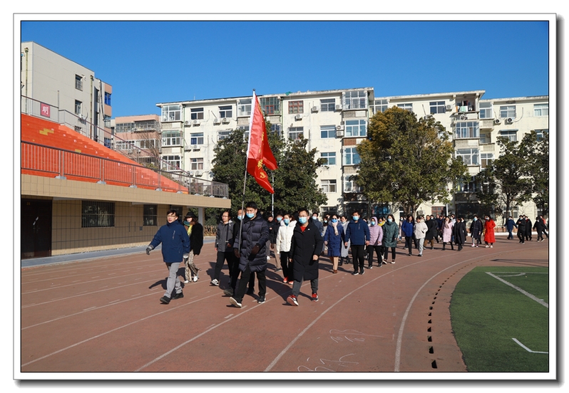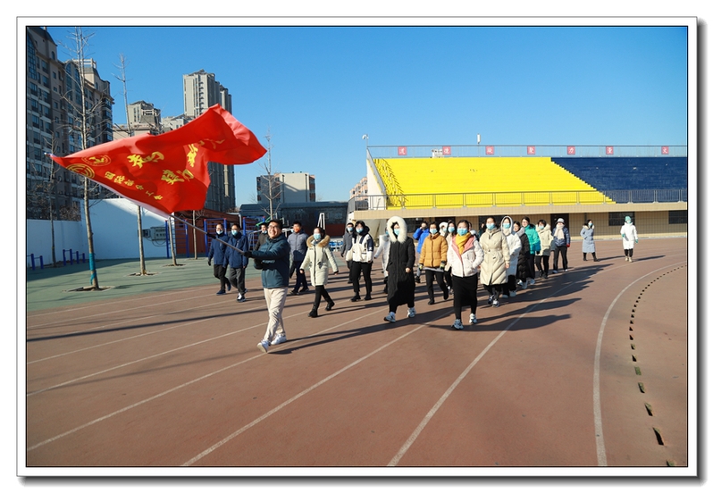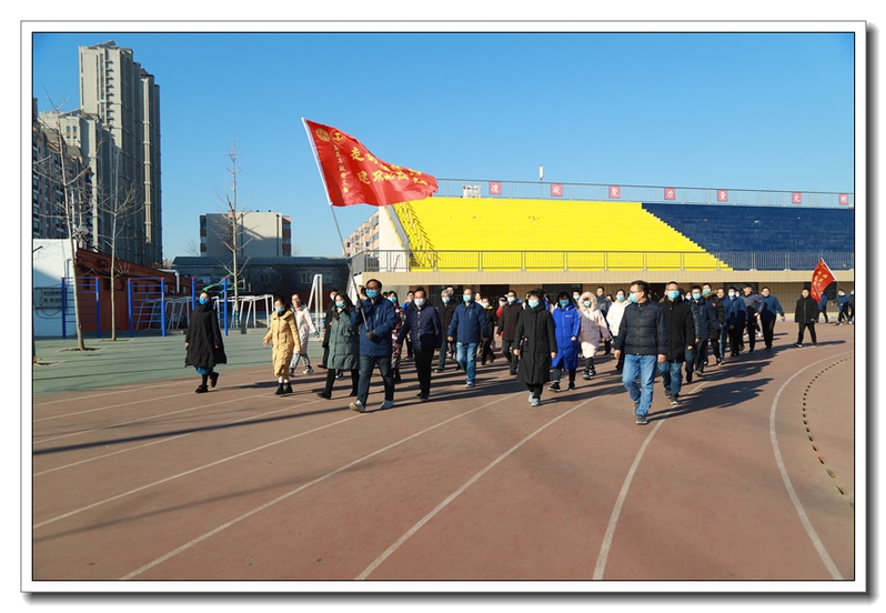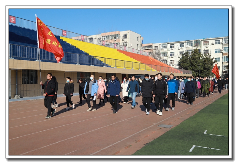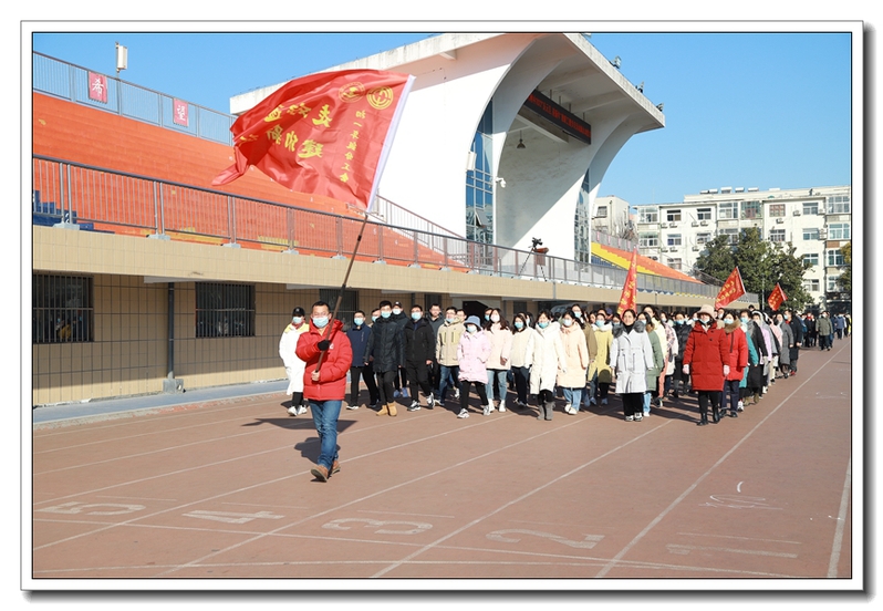 红旗招展,精神饱满,迎着冬日暖阳,8支队伍依次出发。本次健步走活动沿东校区操场跑道进行,参加健步走的教职工精神抖擞、兴趣盎然,迈着矫健的步伐,充分享受着锻炼带来的快乐与充实。环绕操场4周后,大家圆满完成了今天的健步走启动仪式行程。