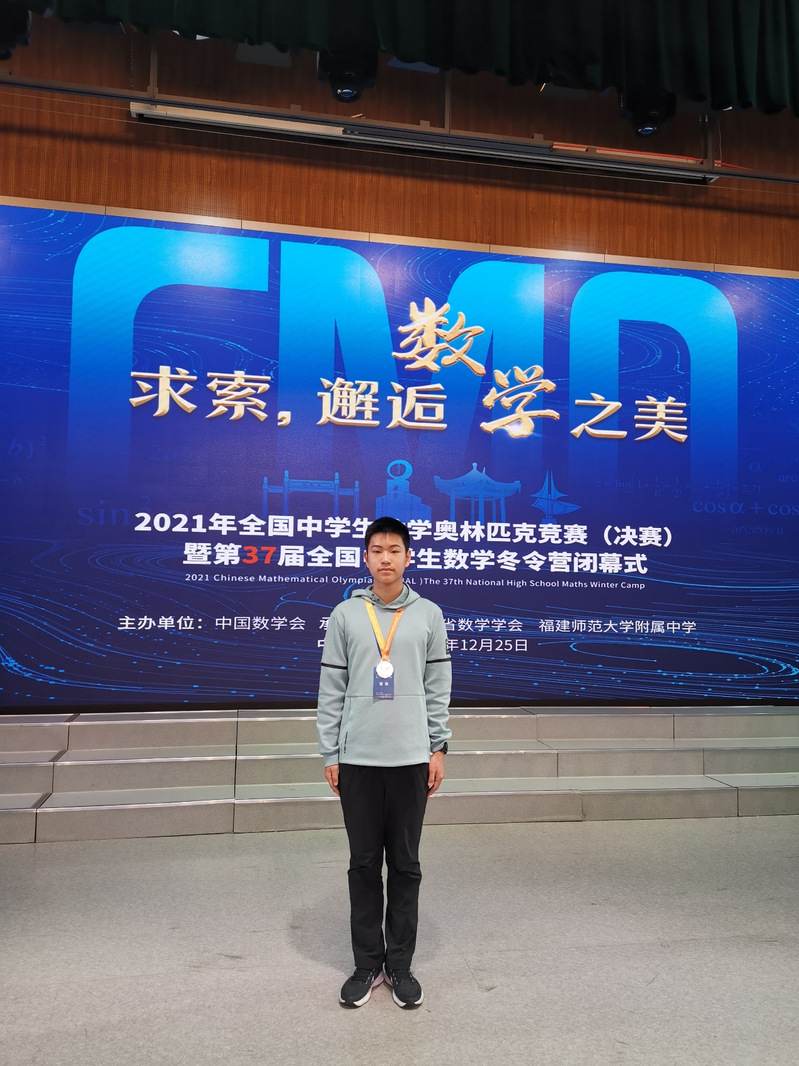 2021年全国中学生数学奥林匹克竞赛决赛暨第37届全国中学生数学冬令营,12月25日在福州闭幕。在这场全国最高水平的中学生数学竞赛中,我校高一年级李凯瑞同学代表河南省队参加角逐获得银牌。这是本年度继高二年级吕宜时同学以全国第9名的优异成绩获得全国中学生生物奥赛决赛金牌之后,我校学生荣获的又一学科奥赛殊荣。
