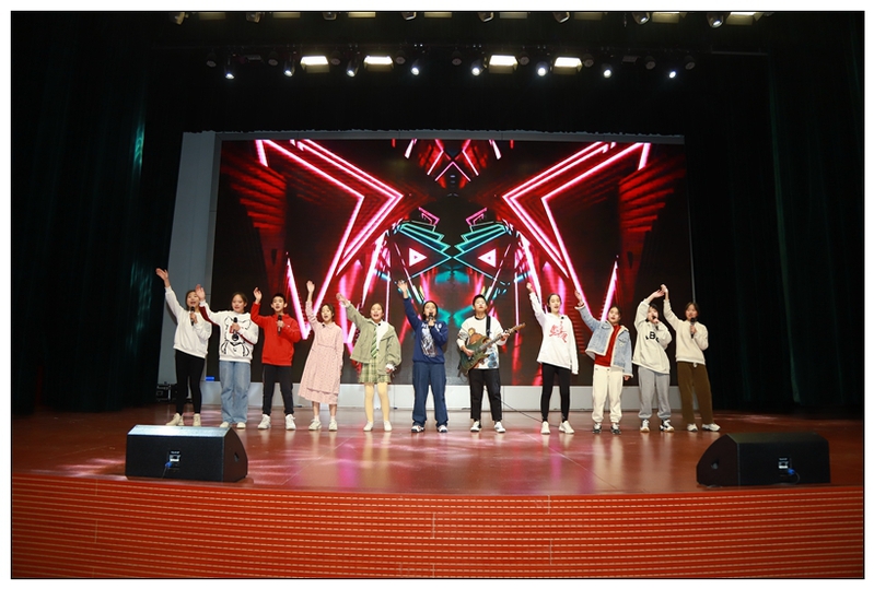 英文歌曲串烧环节中,初二年级学生自编自导,将一首首经典的英文歌曲改变成优美、欢快、青春、动人的旋律,深深感染着在场师生,将活动不断推向高潮。