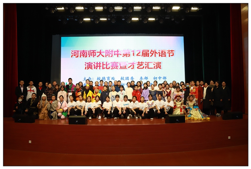 为激发学生对英语学习的兴趣,传播中华优秀传统文化,增强学生的民族自豪感和自信心。12月27日下午,由校德育处、校团委、本部和初中部主办,初二年级和初中英语教研组承办的我校第十二届外语节汇报演出活动在西校区教工礼堂成功举办。校领导李杰明、刘齐晋、杨呈杰莅临出席,相关部门和学部负责人同部分师生代表共同观看了汇演活动。汇演活动由王一帆、刁子萱两位同学主持。