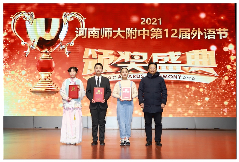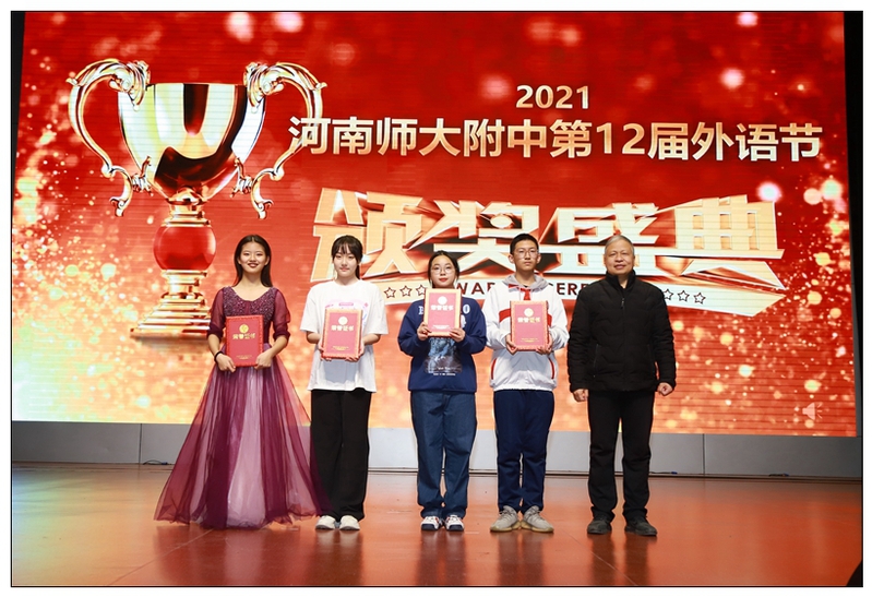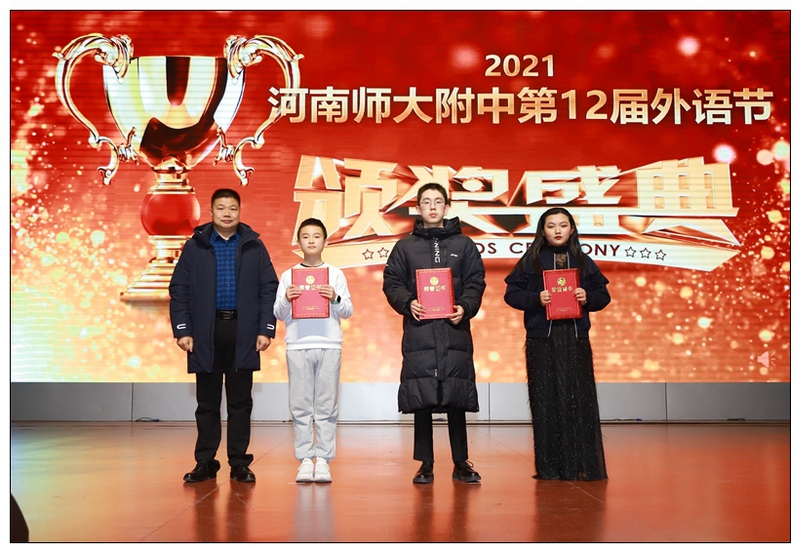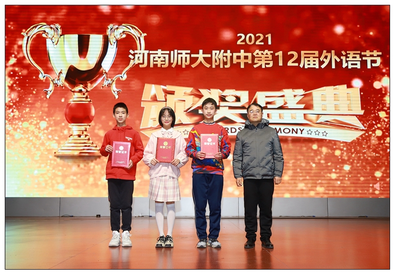 汇演活动结束后,副校长(主持工作)李杰明,党委副书记、纪委书记、工会主席刘齐晋,副校长杨呈杰,德育处主任刘峰分别给获得“超级演说家”、“最佳风尚奖”和“卓越风采奖”和“才艺风采奖”的选手颁奖并合影留念。