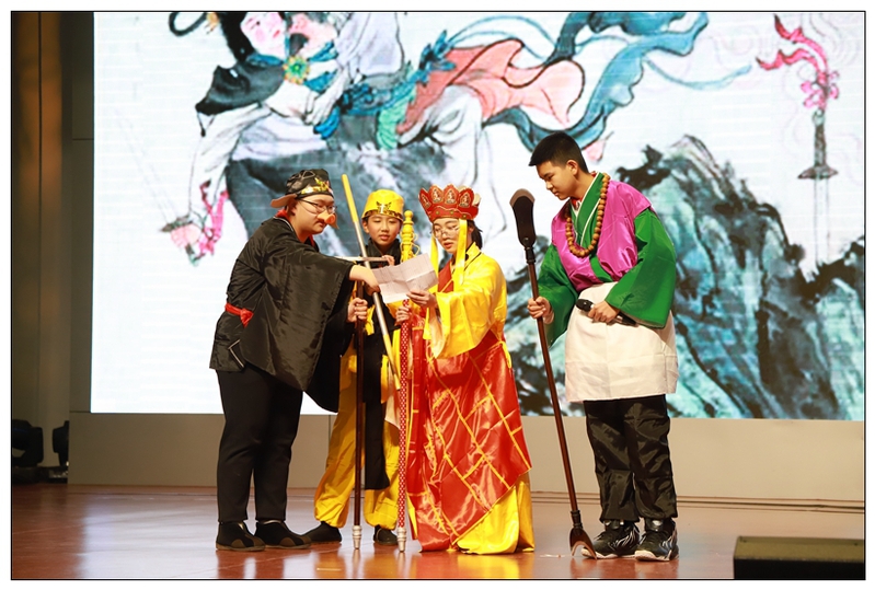英文话剧环节中,本部2006班和2007班的同学们分别带来了《后妈们的茶话会》和《三打白骨精》。表演中,同学们创新剧本内容,保留故事精髓,发掘自我潜能,再现荧幕经典,浓厚的英文气息、风趣幽默的语言赢得台下观众的阵阵掌声。