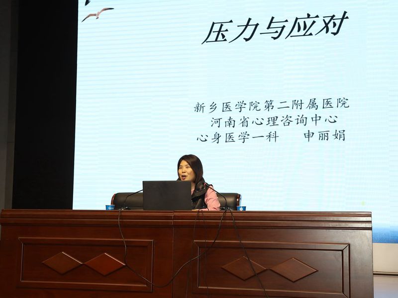 为促进学校“安全卫生知识普及周”活动的开展,切实维护教职员工利益,呵护教职工尤其是女教工的身心健康,3月15日上午,我校工会邀请新乡医学院第二附属医院心身医学一科副主任申丽娟博士莅临西校区礼堂为我校教职员工开办了以缓解心理压力为主题的讲座,校党委副书记、纪委书记、工会主席刘齐晋,校工会副主席、校办公室副主任崔彦芳,校工会副主席、校综治办主任周士锋等工会干部出席活动,全体女教工参加。活动由崔彦芳主持。