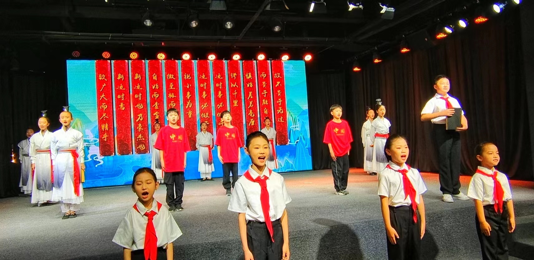 这些好少年的故事赋予了戏曲《薪火相传》更为清晰的意义,他们也用实际行动歌唱着《为祖国绽放》。诗朗诵《大写的中国》表达了青少年对伟大祖国的由衷热爱;情景歌舞《少年壮志行》展现出青少年的青春与朝气;手语舞《一起向未来》抒发了青春正好,蓝图待绘,一起向未来的青春斗志;《少先队员之歌》更是体现了青少年的初心与使命。