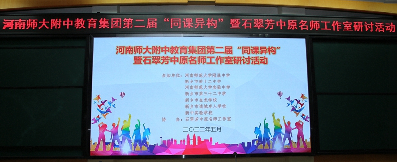 为不断深化教育集团办学改革,引导集团学校树立正确的集团化办学质量观,有效破除管理、师资、课程等制约校际融通的关键要素,促进集团内各校深度融合,整体提升集团化办学质量和水平, 5月18日-5月19日,河南师范大学附属中学教育集团第二届“同课异构”暨石翠芳中原名师工作室研讨活动成功举行。