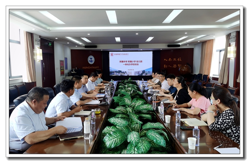 7月1日下午,河南师范大学附属学校一体化办学启动会在我校召开。校领导张银付、李杰明、刘齐晋、赵振华、杨呈杰、陈景任、侯伟,附属小学校长李万里、党支部书记程乔夏,幼儿园党支部书记、园长常利芹等领导出席会议。会议由副校长(主持工作)李杰明主持。