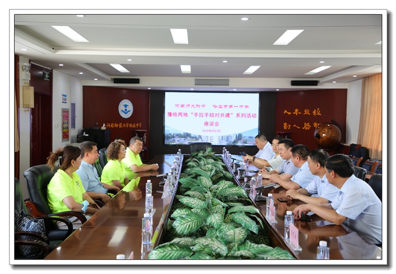 参观结束后,在校第二会议室开展了两校领导及教师代表座谈会。校党委书记张银付代表学校对哈密客人的到来表示热烈欢迎,希望双方通过此次座谈交流相互借鉴,共同提高。李杰明回顾我校多年来外派教师援疆的情况,对我校“四化”建设及近年来的办学实践进行了详细介绍。双方围绕当前的教育发展形势、教育热点问题以及今后在组团式点对点援疆、结对共建、教学教研资源共享、体育特长班合作、以文化润疆为基础开展定期交流和友好往来等内容进行了深入交流探讨。