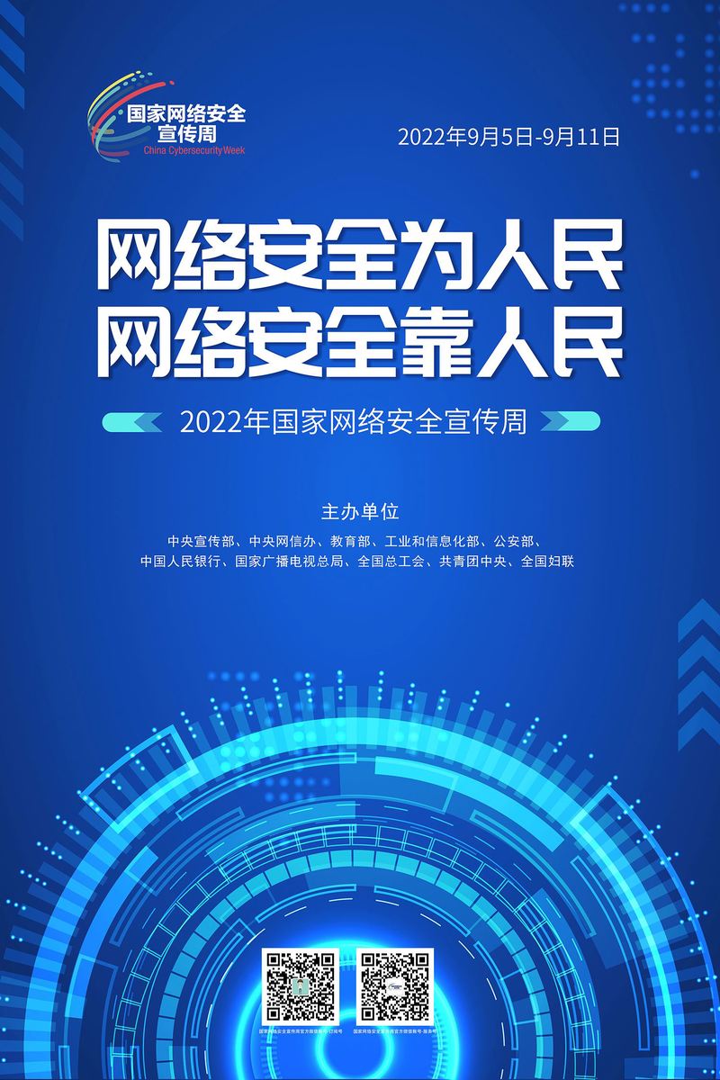 2022年9月5日至11日是第九届国家网络安全宣传周,今年的主题是“网络安全为人民,网络安全靠人民”。