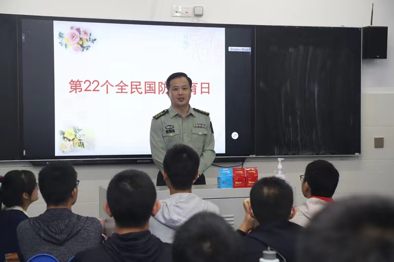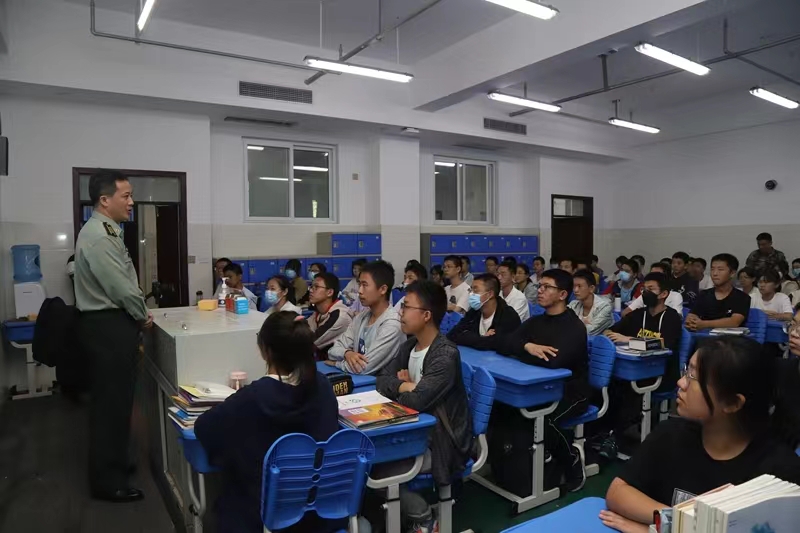本次活动以“新时代爱国强军谱新篇”为主题,牧野区人民武装部上校政委陈伟通过真实生动的案例和故事向同学们普及了《国防法》、《国防教育法》等国防法律法规,详细介绍了我国在军事方面取得的巨大成就,生动讲述了我们身边革命先烈们的英雄事迹。最后,陈伟政委勉励同学们,要好好学习科学文化知识,鼓励同学们积极参军报国,为我国的国防事业作出贡献。