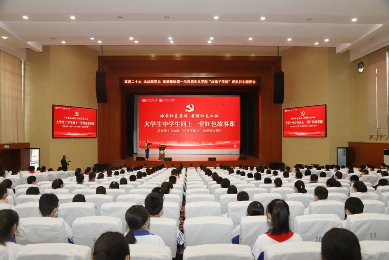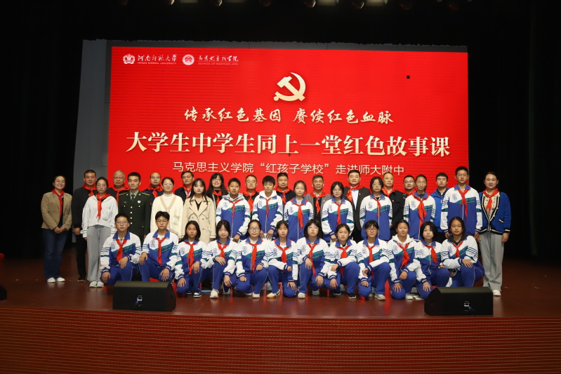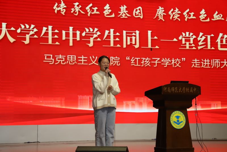 10月13日上午,在中国少年先锋队建队73周年的特殊日子里,河南师范大学马克思主义学院“红孩子学校”走进河南师大附中,为我校初二年级的少先队员们举行了一场震撼人心、催人奋进的“大学生中学生同上一堂红色故事课”主题巡讲活动。