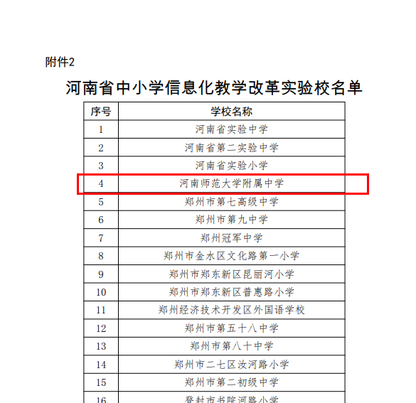 河南省中小学信息化教学改革实验区、实验校名单公布,河南师范大学附属中学榜上有名。