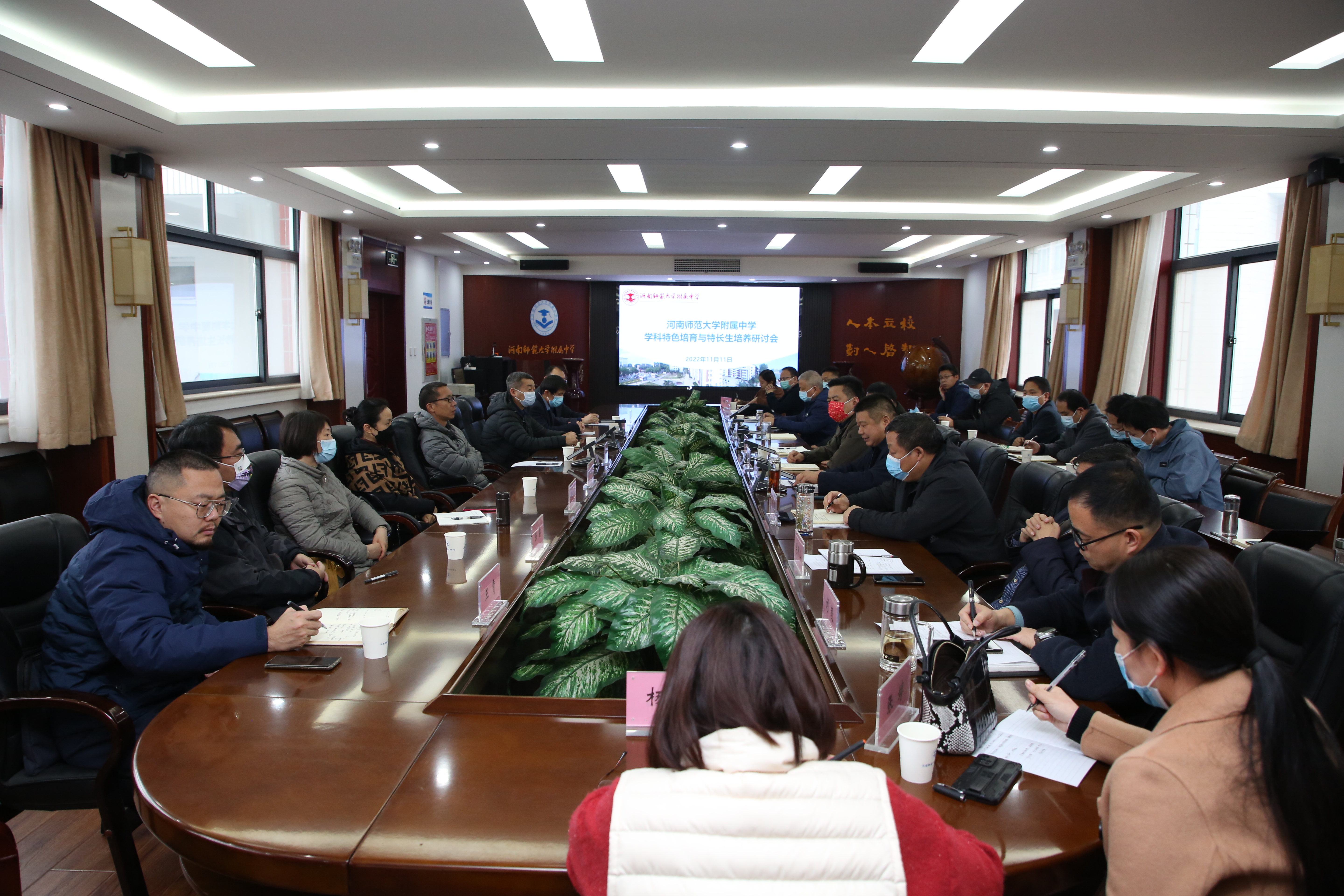 11月11日下午,我校在第二会议室召开学科特色培育与特长生培养研讨会。受我校邀请,河南师范大学文学院副院长屈会超、美术学院副院长王霄、音乐舞蹈学院副院长师玉丽、体育学院副院长李玉周以及教师代表李钦彤、陈雷、李晶晶、毛爱华出席研讨会,我校党委书记张银付,副校长(主持工作)李杰明,副校长赵振华、陈景任、侯伟以及相关中层干部、教研组长、教师代表参加了研讨会。