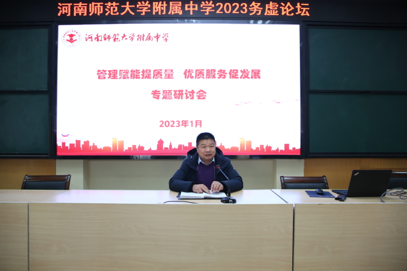 1月31日—2月1日,河南师大附中2023年“优化管理、深化改革,助推发展,提升质量”务虚论坛在教研办公楼四楼报告厅举行。校领导张银付、李杰明、刘齐晋、赵振华、杨呈杰、陈景任、侯伟出席会议,中层以上干部、教研组长、年级主任参加会议。务虚论坛围绕学校事业发展的核心话题,举办了三场专题研讨会。