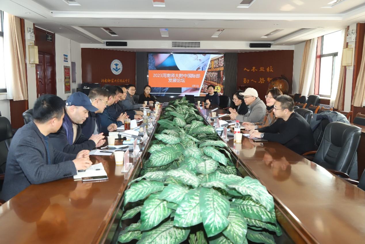 3月1日上午,河南师大附中国际部发展论坛在我校第二会议室举行,河南师大国际合作与交流处处长赵扬、国际教育学院执行院长董海,校领导张银付、李杰明、刘齐晋、赵振华,国际部、校办、招办负责人和欧美项目、小语种项目代表出席论坛。
