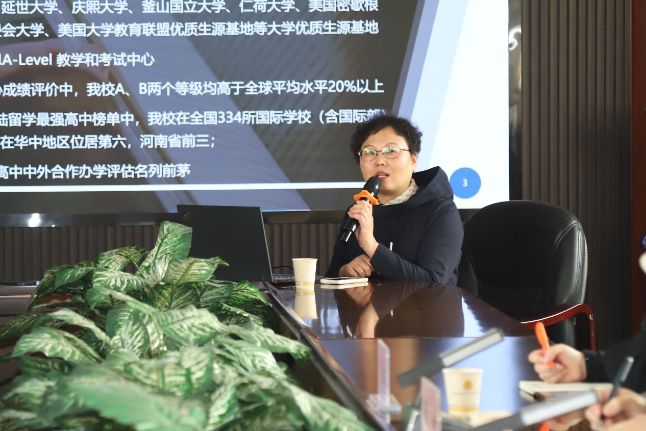 河南师大国际合作与交流处处长赵扬、国际教育学院执行院长董海结合高中层面国际留学趋势分析了政策,对我校国际部发展提出了建议。
