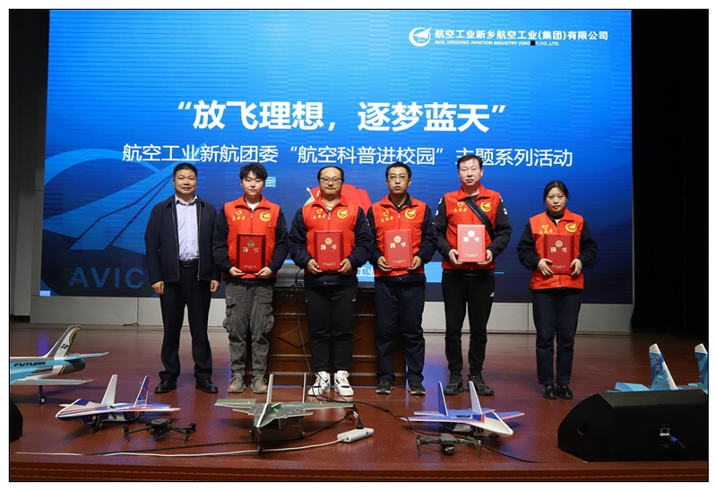 航空科普知识讲座结束后,副校长(主持工作)李杰明为航空工业新航集团“航空科普”讲师团成员颁发校外思政辅导员聘书。