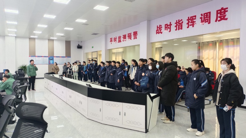 文化展厅参观结束后,讲解员带领同学们来到企业的智慧应急指挥中心和清洁生产控制中心。在这里,同学们零距离参观了企业员工的工作状态和方式,真切地感受到现代科技对企业运营、安全生产、节能环保所带来的便利、高效和快捷。随后,同学们乘坐车辆参观了企业厂区的区域规划、车间规模和生产环境。