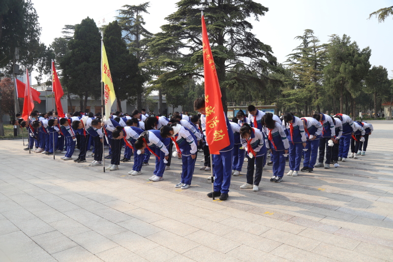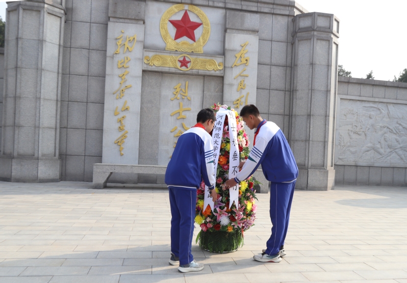 为弘扬爱国主义精神,继承先烈遗志,传承红色基因,3月27日下午,我校组织师生代表徒步来到新乡市烈士陵园,开展“缅怀先烈 告慰英魂”清明祭扫活动。