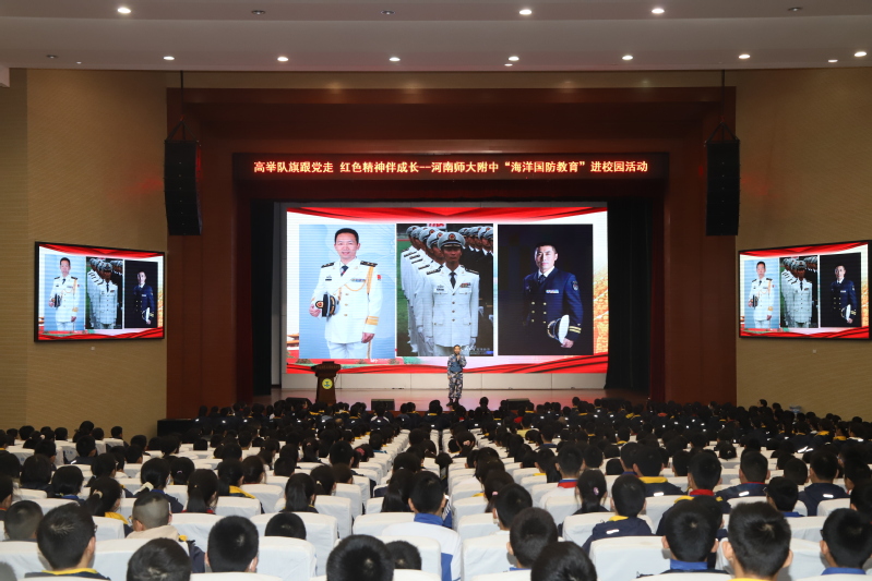在第八个全民国家安全教育日来临之际,为进一步推动总体国家安全观深入人心、落地生根,引导学生挺膺担当时代新人,共筑国家安全防线,4月4日上午,我校在西校区教工礼堂开展“海洋国防教育”进校园活动。校党委书记张银付,德育处主任刘峰,本部教育教学部副主任余国庆、张自发、金修理出席活动,初一年级全体师生600余人共同参加活动。活动由李园园老师主持。