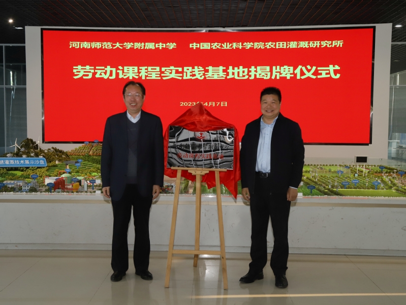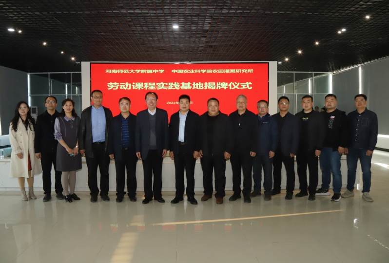 接着,农田灌溉研究所周国民所长和河南师大附中李杰明校长共同为“劳动课程实践基地”揭牌,并合影留念。