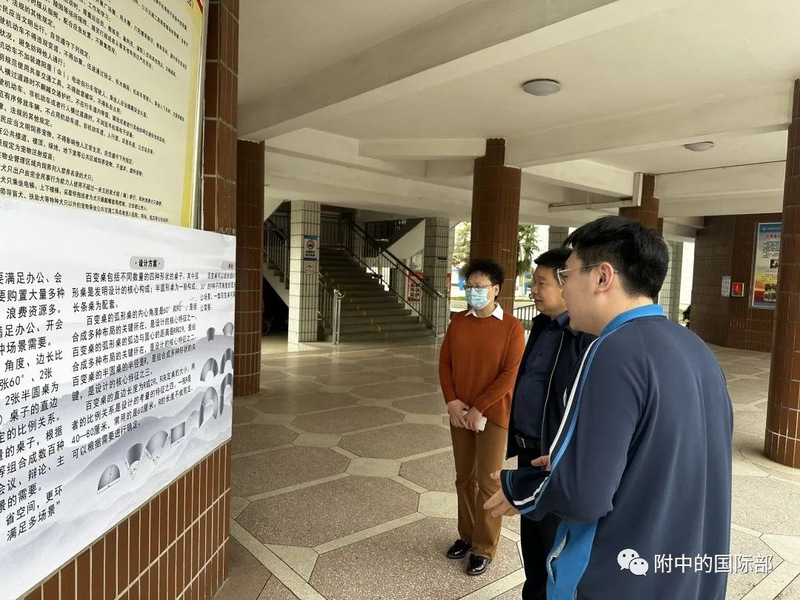 仪式上,第一套走下生产线的百变桌被它的发明者职世卓同学深情捐赠给了学校。现在,它正静立一号教学楼一楼大厅,吸引着青春校园里来来往往的同学少年好奇、歆羡的目光,激励着附中学子从优秀走向卓越……