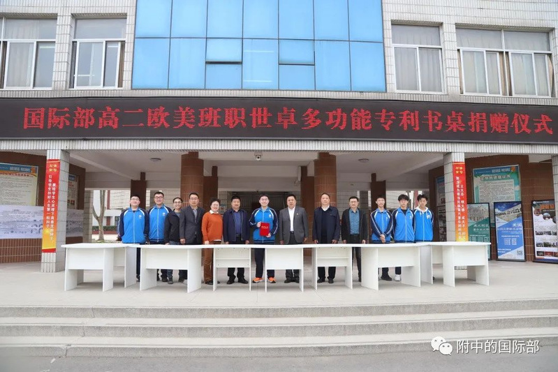 为感谢学校培养,4月13日,附中国际部高二年级欧美班职世卓同学将自己设计发明的第一套百变桌捐赠给了母校。我校举行仪式接受捐赠 ,校党委书记张银付、副校长(主持工作)李杰明、副校长赵振华及国际部领导出席活动,国际部师生代表共同参加了活动。