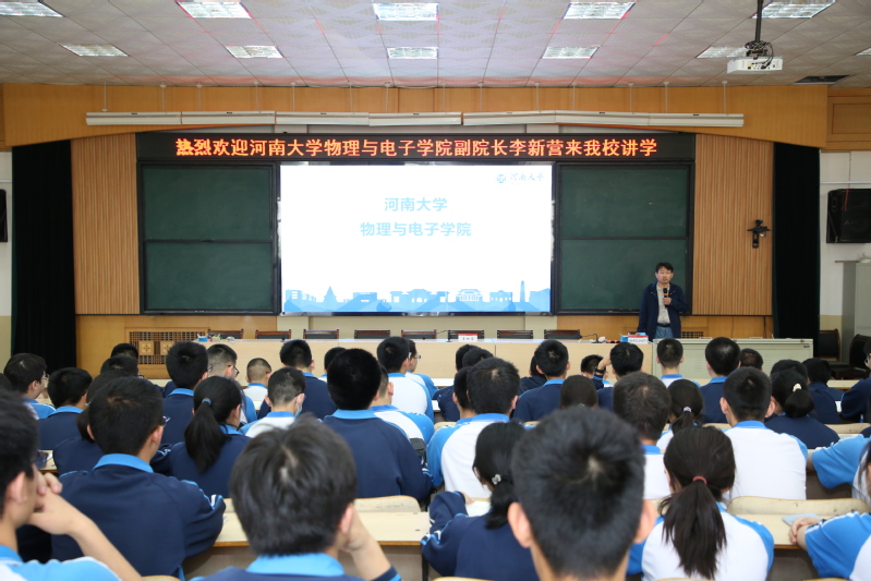 李新营在讲话中对我校优良的办学传统、鲜明的办学特色和突出的办学业绩给予了高度评价。他表示,河南大学物理与电子国家级实验教学示范中心作为河南省首批普通高中学生发展中心,致力于面向高中生组织高水平实验教学、培养学生实践能力、创新精神和学科素养,是推进高中学校与高等学校有效衔接、协同育人的重要工作平台。河大物理学院愿意发挥教学、师资、资源、管理和信息化等方面优势,结合高中学生特点,进一步优化培养模式、教学方式。他强调,本次两校在共建学科基地方面的合作是在省教育厅的指导下开展的有益尝试,双方要探索创新,共同努力共同提升,实现全程和深度合作,为基础教育育人方式改革贡献力量。