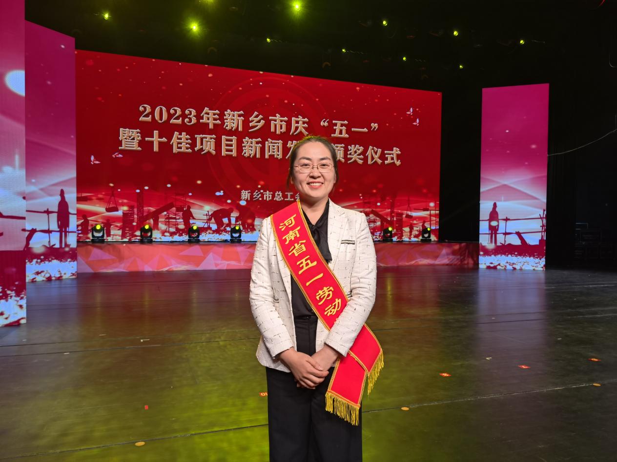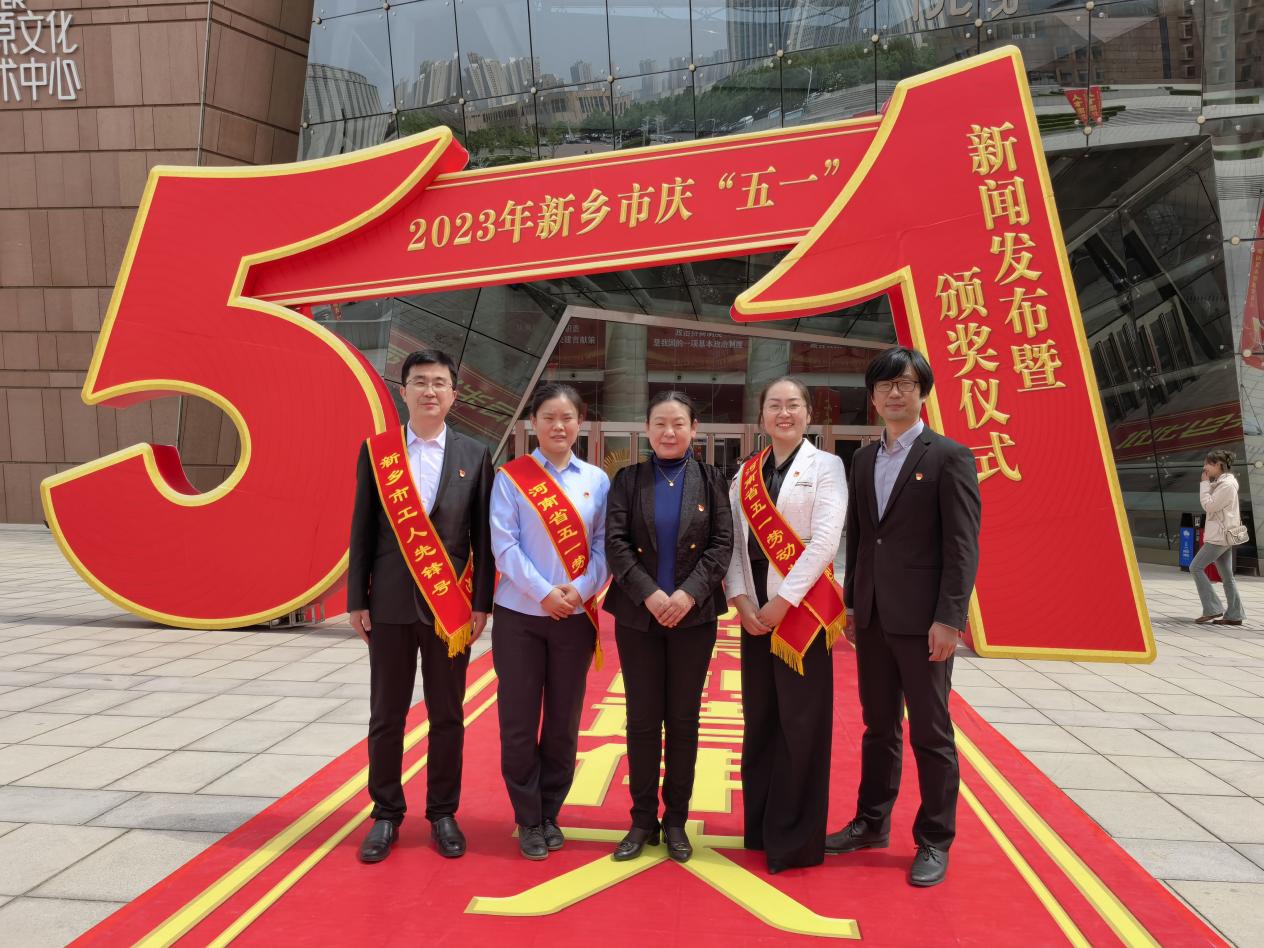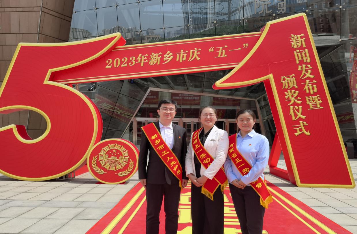 4月28日上午,新乡市总工会隆重举行五一国际劳动节庆祝表彰大会,向荣获2023年度“五一”奖项的劳动者代表颁发了奖项。双双荣获河南省“五一劳动奖章”的我校教师刘珂、焦东晓,荣获新乡市“工人先锋号”的我校政治教研组组长范楷老师作为受表彰对象,从市领导手中接领奖项,畅享到了作为劳动模范的荣耀。