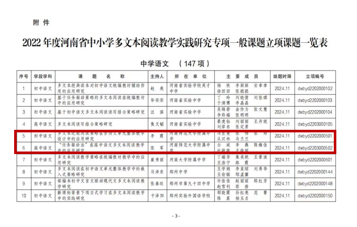 与此同时,我校申报的2022年度两项省级多文本阅读教学实践研究专项课题均成功立项,并在此次多文本骨干教师培训会上正式提交了课题开题报告。其中,我校高中组语文教研组长张军老师主持课题现场展示开题报告。