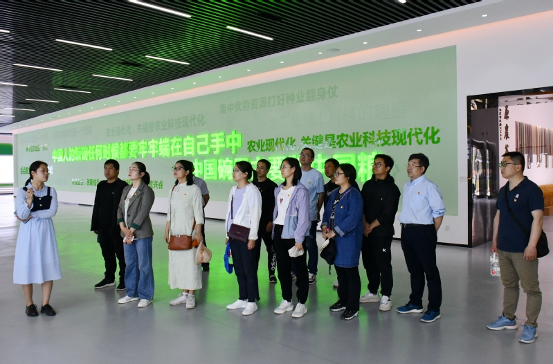 通过参观,支部党员充分认识到建设中原农谷的重大意义:农业是我国的立国之本,在国民经济和社会发展的历史长河中有着举足轻重的地位。我省作为我国重要的农业大省,省委、省政府深入贯彻习近平总书记关于“三农”工作的重要论述和视察河南重要讲话精神,围绕“两个确保”、实施“十大战略”,依托国家生物育种产业创新中心、神农种业验室等,整合全省种业科技资源和人才力量,坚持“创新驱动、开放发展、市场引领、绿色低碳、改革推动”五大原则,建设立足河南、服务全国、面向全球的“中原农谷”,开展种源“卡脖子”技术攻关,着力推进农业现代化进程,让中国的田野里种上更多河南种子,让中国人的饭碗里装有更多河南粮食。