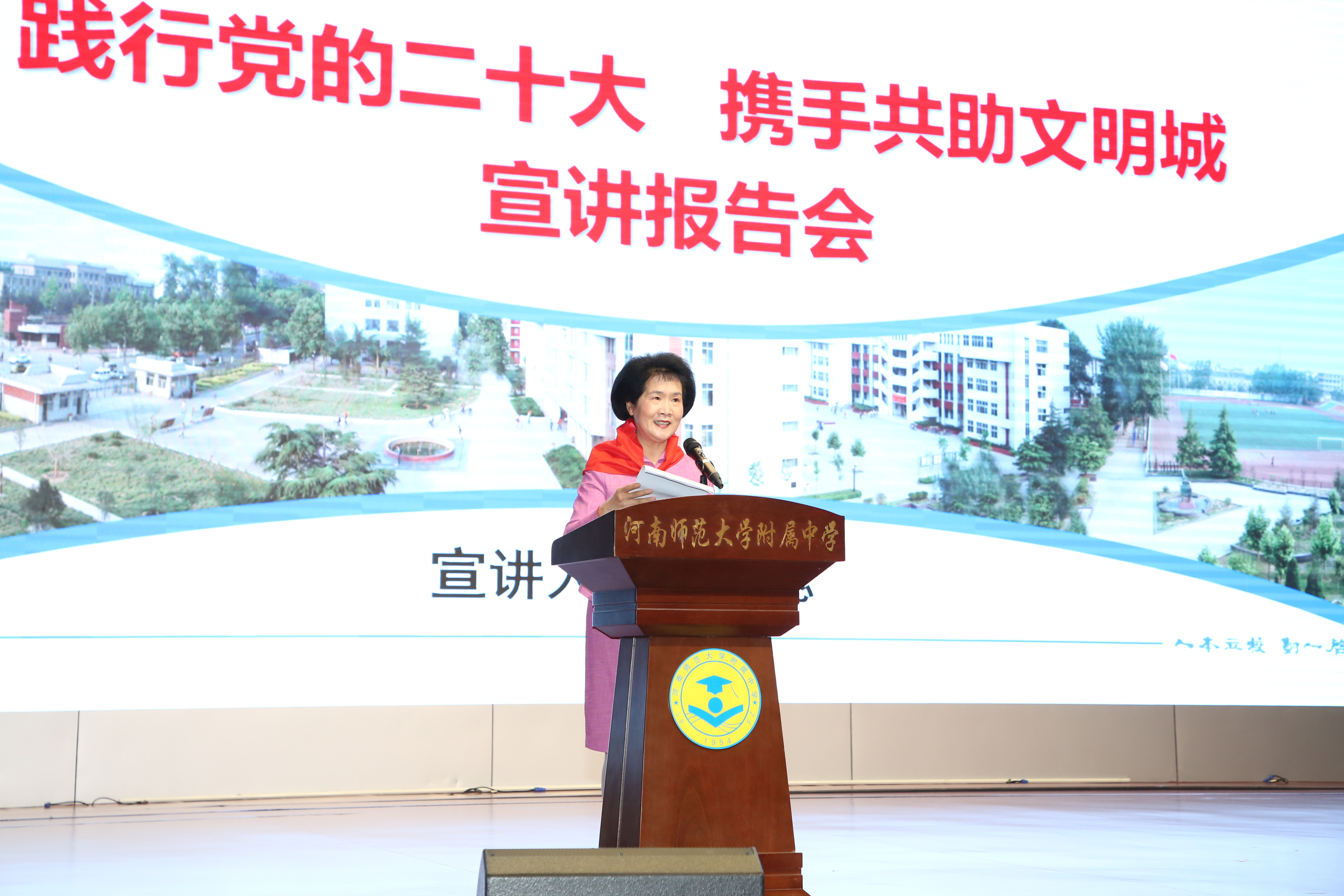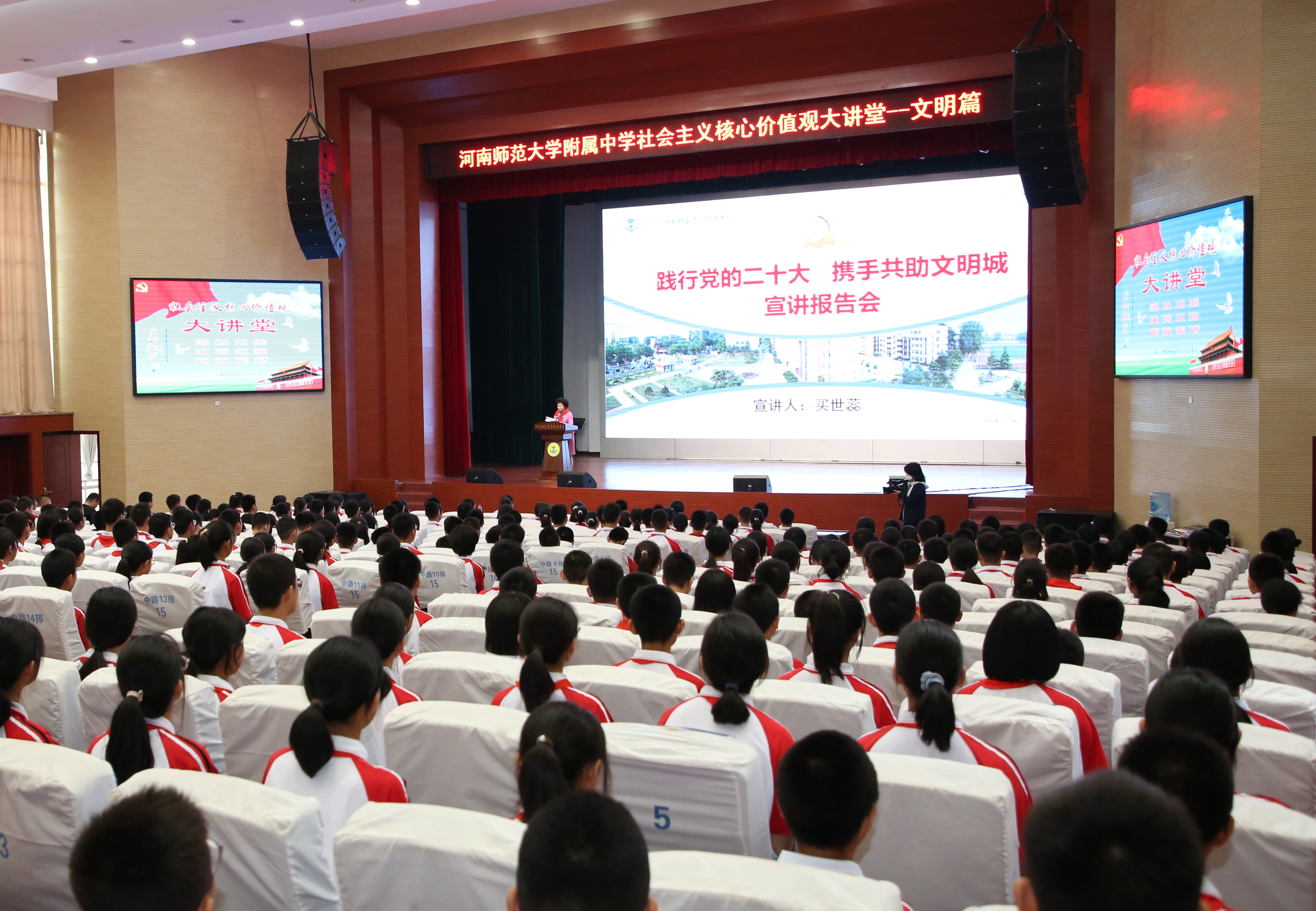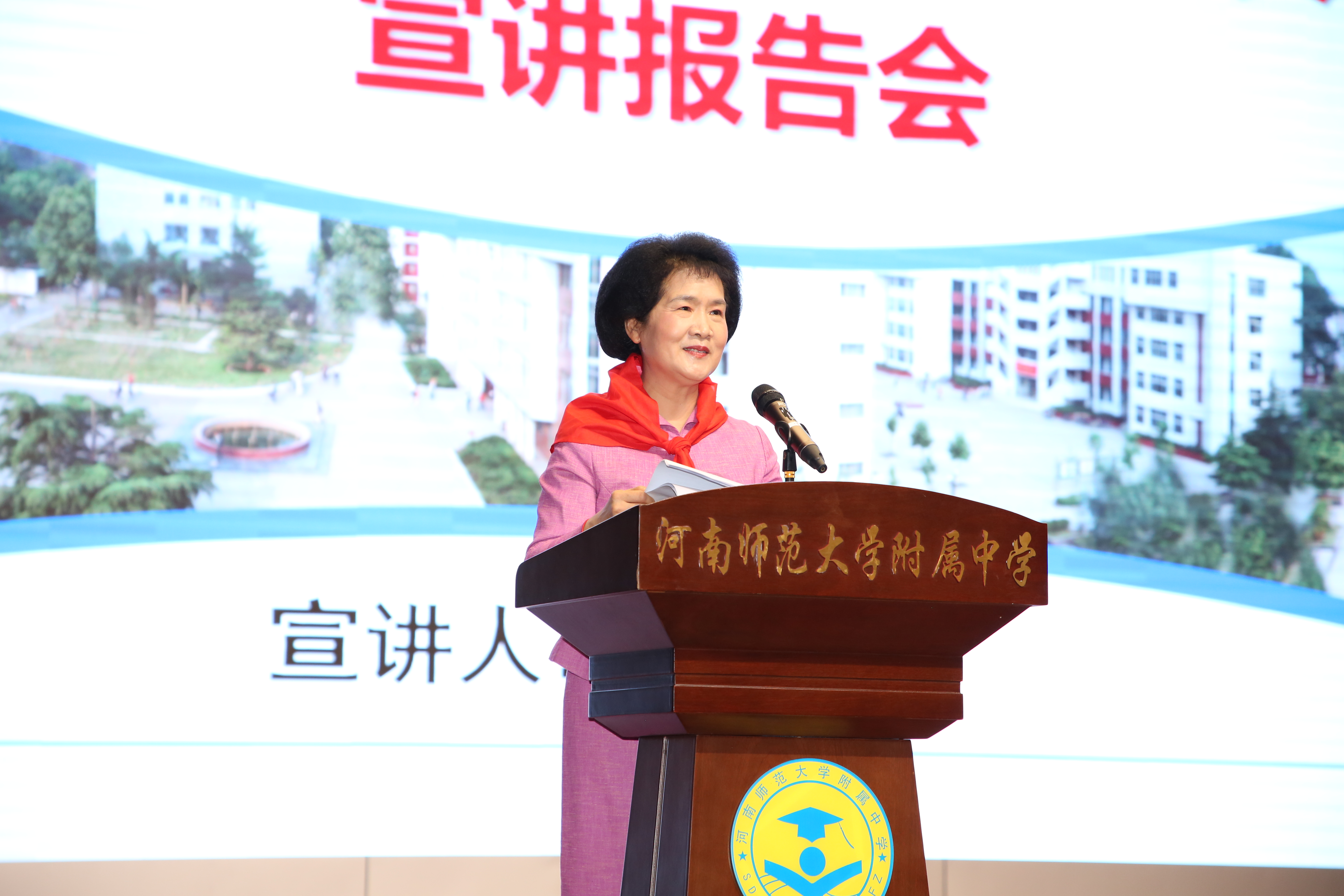 买世蕊在宣讲中还充分肯定了我校在加强大中小学思政课一体化建设、提升拔尖创新人才培养水平、促进新乡市义务教育优质均衡与普通高中多样化发展、坚持文明校园创建和助力新乡市全国文明城市常态化创建等方面取得的突出成果,并对我校进一步统筹校内外资源上好思政课、构建“五育”融合校本育人体系、办好人民满意的基础教育提出了意见和建议。精彩的宣讲报告让在场师生深受启发、倍感鼓舞,热烈的掌声在礼堂中不断响起。