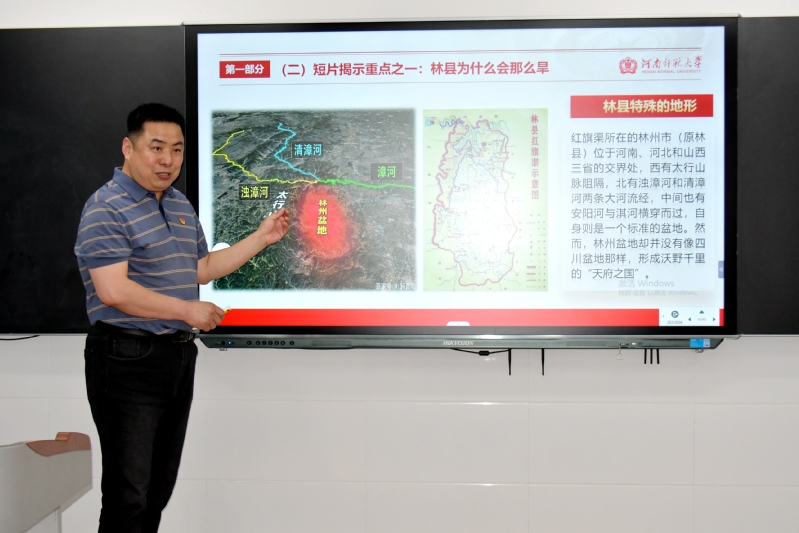 张银付以《红旗渠精神与附中经开校区高质量发展》为题,分别从“红旗渠概况、红旗渠修建过程、红旗渠精神丰富内涵、红旗渠精神与附中经开校区高质量发展”等四个方面进行讲解阐述。课程通过大量详实的数据、历经岁月沉淀的图片和一个个不畏天地的拼搏奋斗的事例,展现了修建红旗渠的历史背景、艰辛历程、涌现出的先进典型事迹和形成的“自力更生、艰苦奋斗、团结协作、无私奉献”的红旗渠精神。